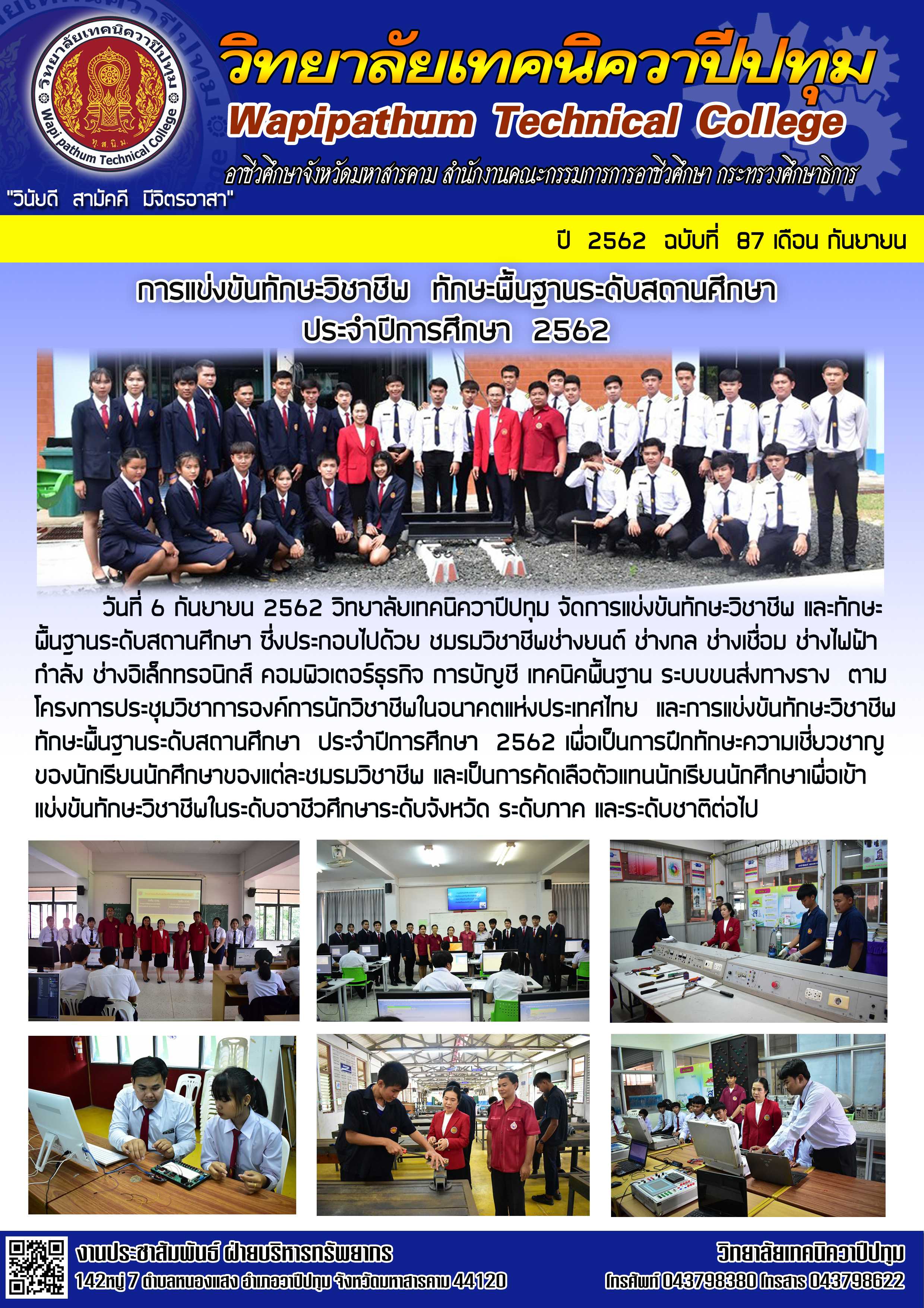 วิทยาลัยเทคนิควาปีปทุม จัดการแข่งขันทักษะวิชาชีพ ทักษะพื้นฐานระดับสถานศึกษา ประจำปีการศึกษา 2562