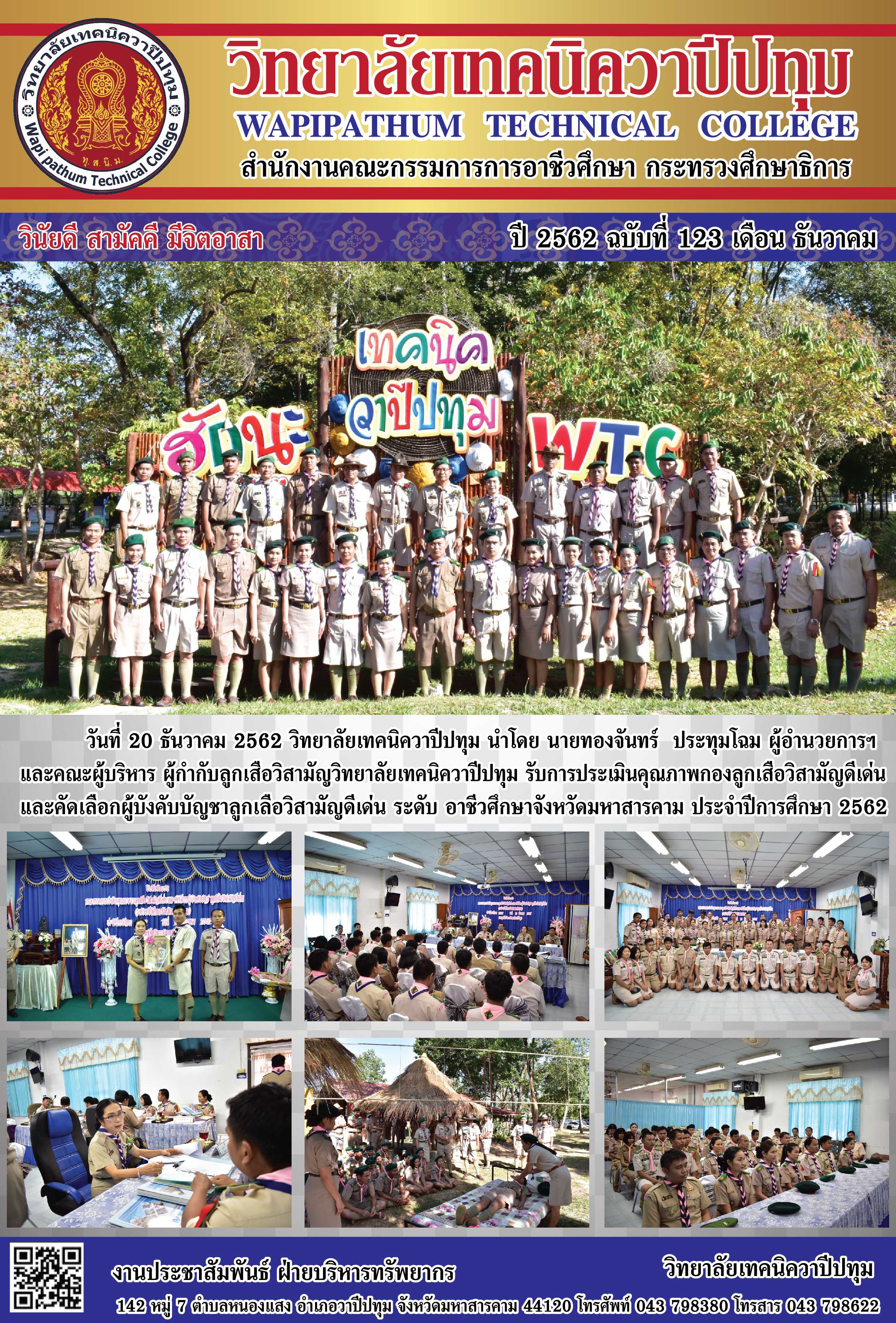 วิทยาลัยเทคนิควาปีปทุม รับการประเมินคุณภาพกองลูกเสือวิสามัญดีเด่น และคัดเลือกผู้บังคับบัญชาลูกเลือวิสามัญดีเด่น ระดับ อาชีวศึกษาจังหวัดมหาสารคาม ประจำปีการศึกษา 2562
