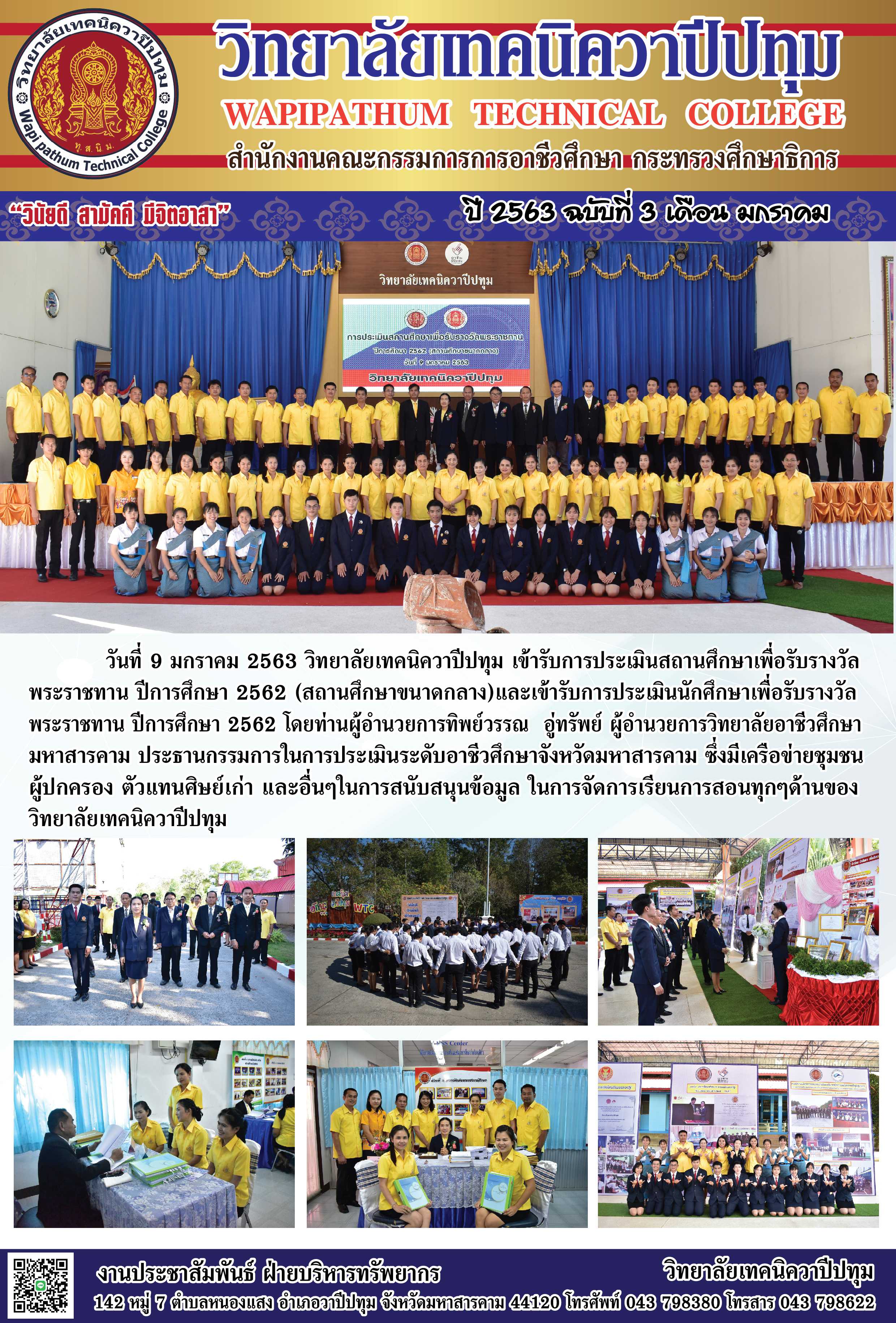 วิทยาลัยเทคนิควาปีปทุม เข้ารับการประเมินสถานศึกษาเพื่อรับรางวัลพระราชทาน ปีการศึกษา 2562 (สถานศึกษาขนาดกลาง) และเข้ารับการประเมินนักศึกษาเพื่อรับรางวัลพระราชทาน ปีการศึกษา 2562