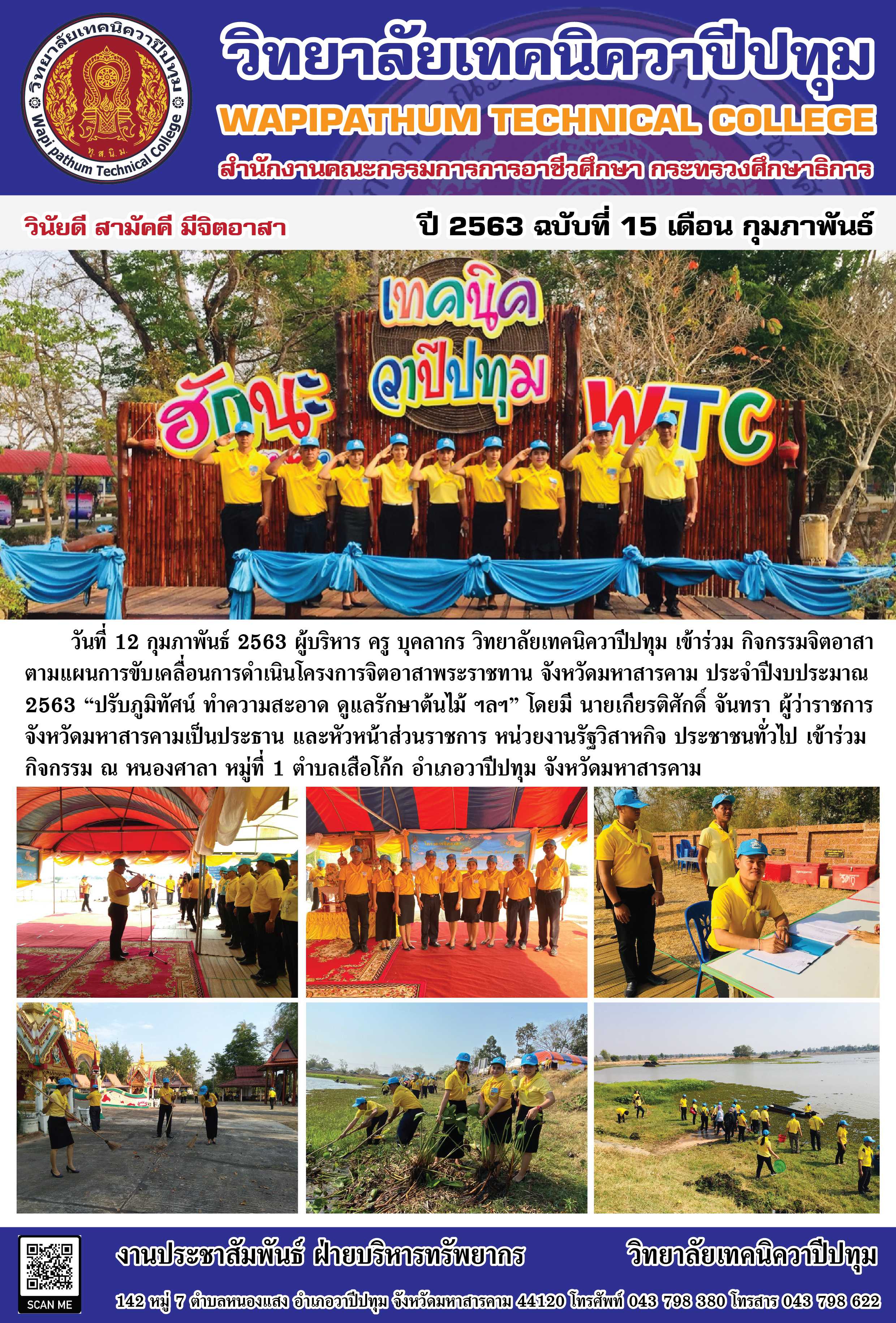 วิทยาลัยเทคนิควาปีปทุม เข้าร่วม กิจกรรมจิตอาสา ตามแผนการขับเคลื่อนการดำเนินโครงการจิตอาสาพระราชทาน จังหวัดมหาสารคาม ประจำปีงบประมาณ 2563
