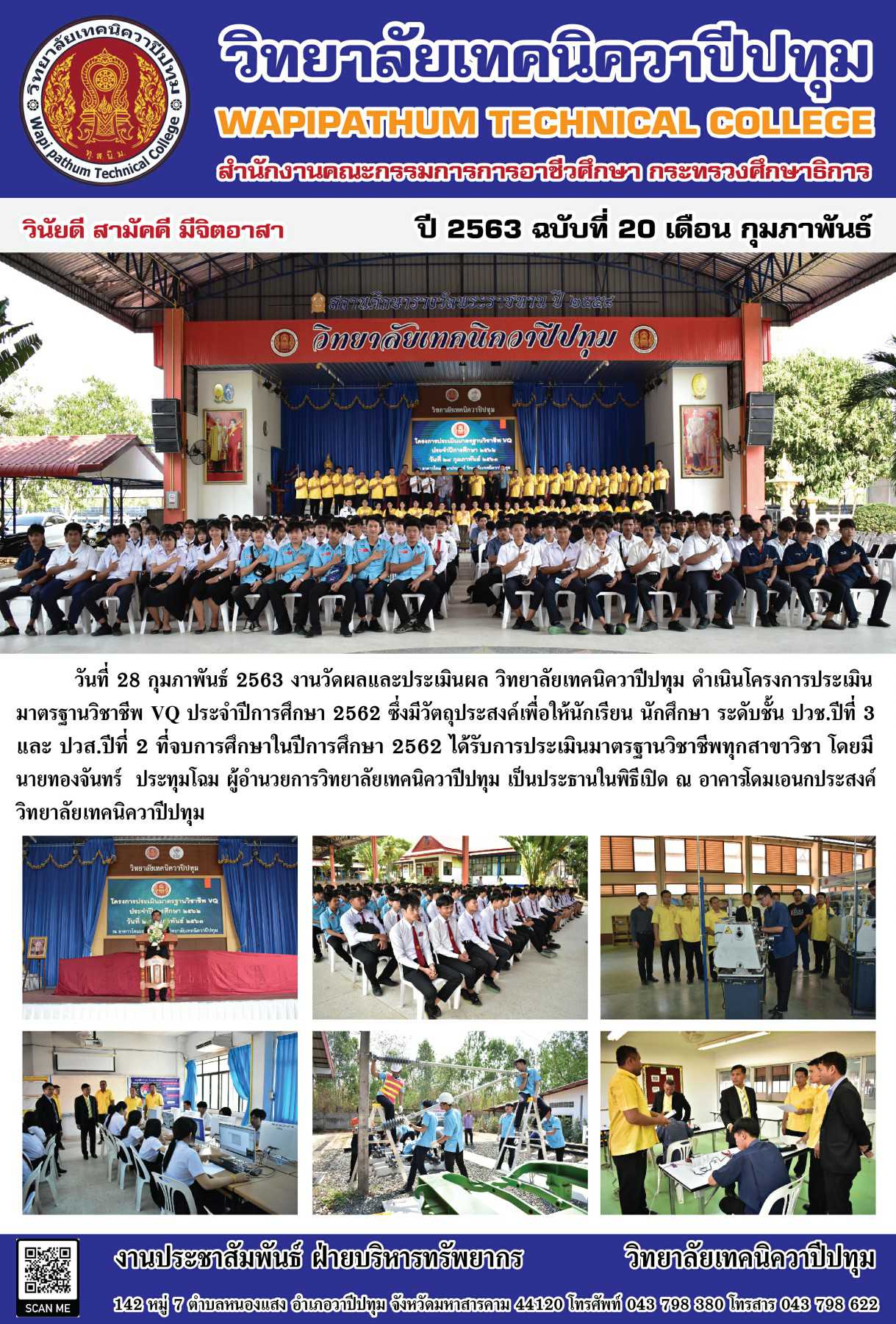 งานวัดผลและประเมินผล วิทยาลัยเทคนิควาปีปทุม ดำเนินโครงการประเมินมาตรฐานวิชาชีพ VQ ประจำปีการศึกษา 2562