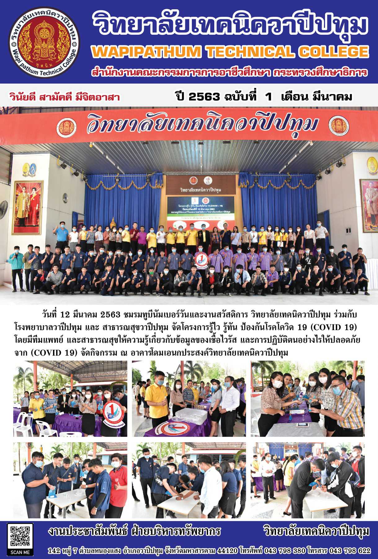 ชมรมทูบีนัมเบอร์วันและงานสวัสดิการ วิทยาลัยเทคนิควาปีปทุม ร่วมกับโรงพยาบาลวาปีปทุม และสาธารณสุขวาปีปทุม จัดโครงการรู้ไว รู้ทัน ป้องกันโรคโควิด 19 (COVID 19)