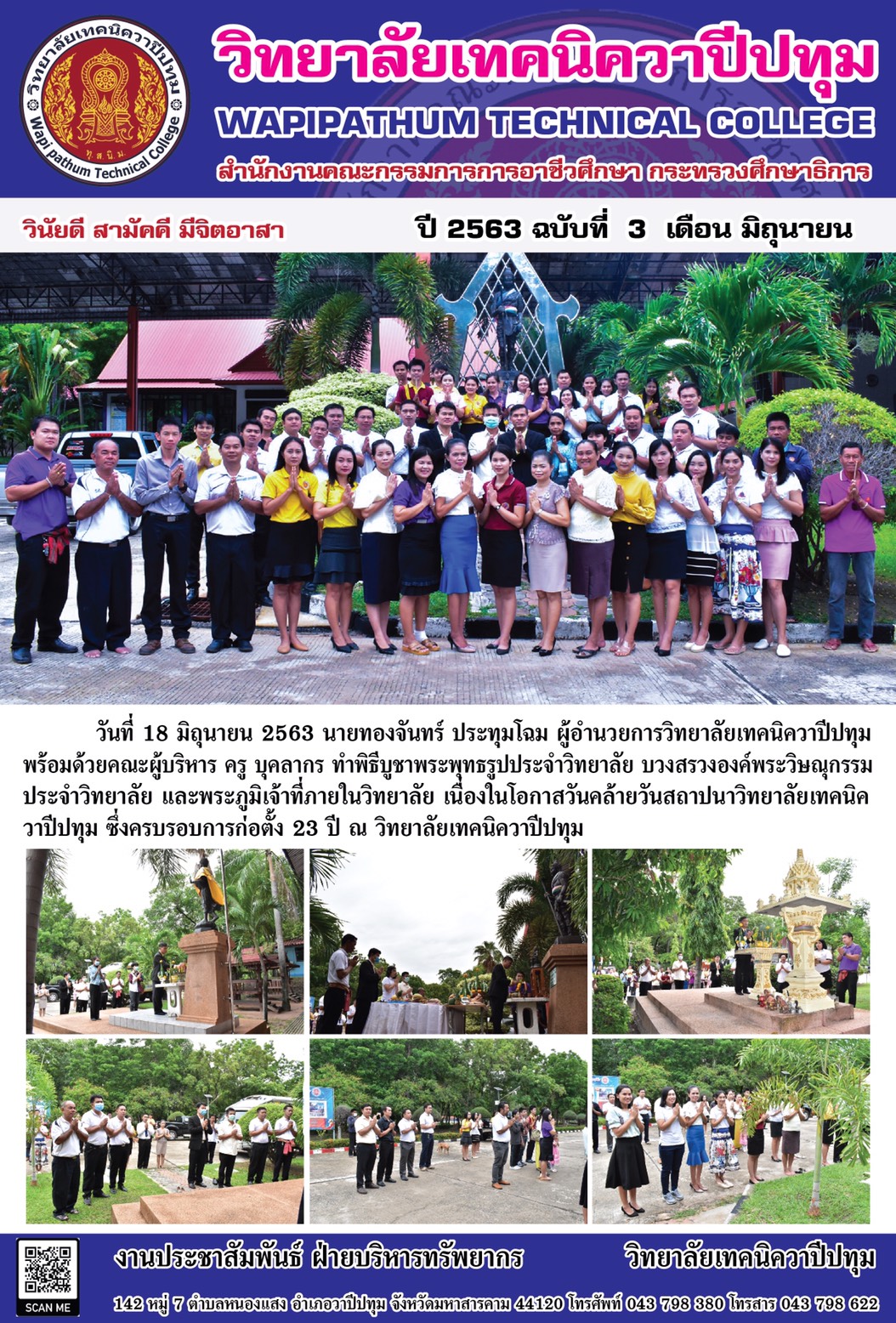 วิทยาลัยเทคนิควาปีปทุม ทำพิธีบูชาพระพุทธรูปประจำวิทยาลัย บวงสรวงองค์พระวิษณุกรรมประจำวิทยาลัย และพระภูมิเจ้าที่ภายในวิทยาลัย