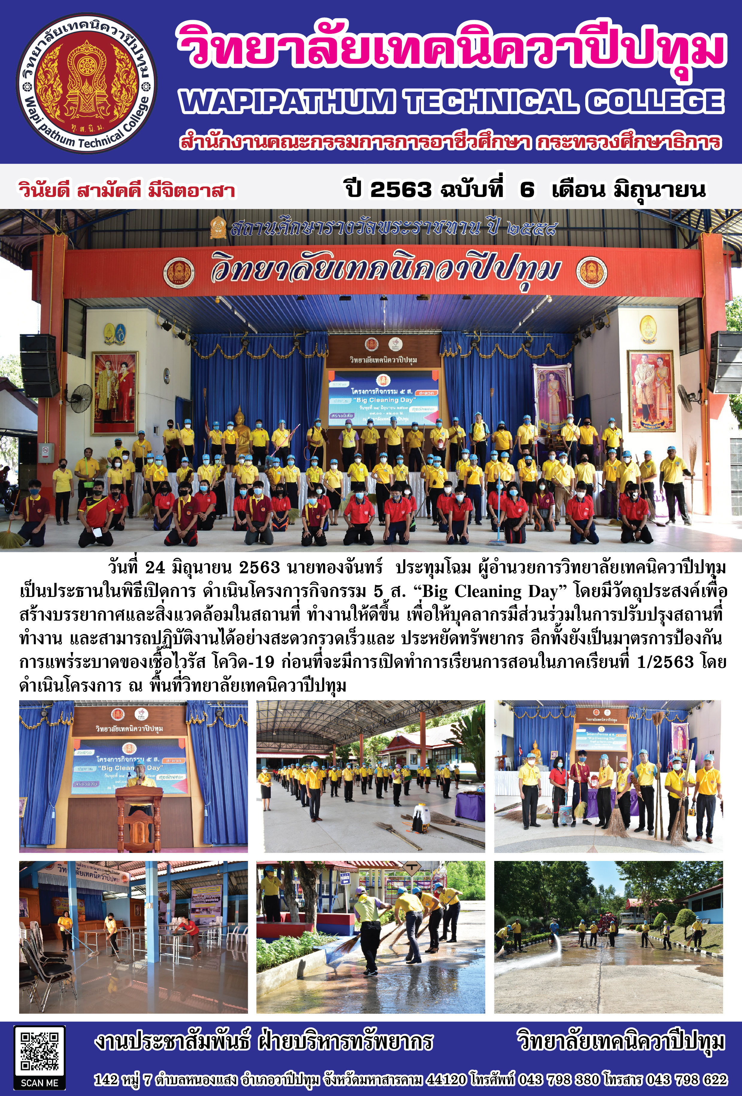 วิทยาลัยเทคนิควาปีปทุม ดำเนินโครงการกิจกรรม 5 ส. Big Cleaning ณ พื้นที่วิทยาลัยเทคนิควาปีปทุม