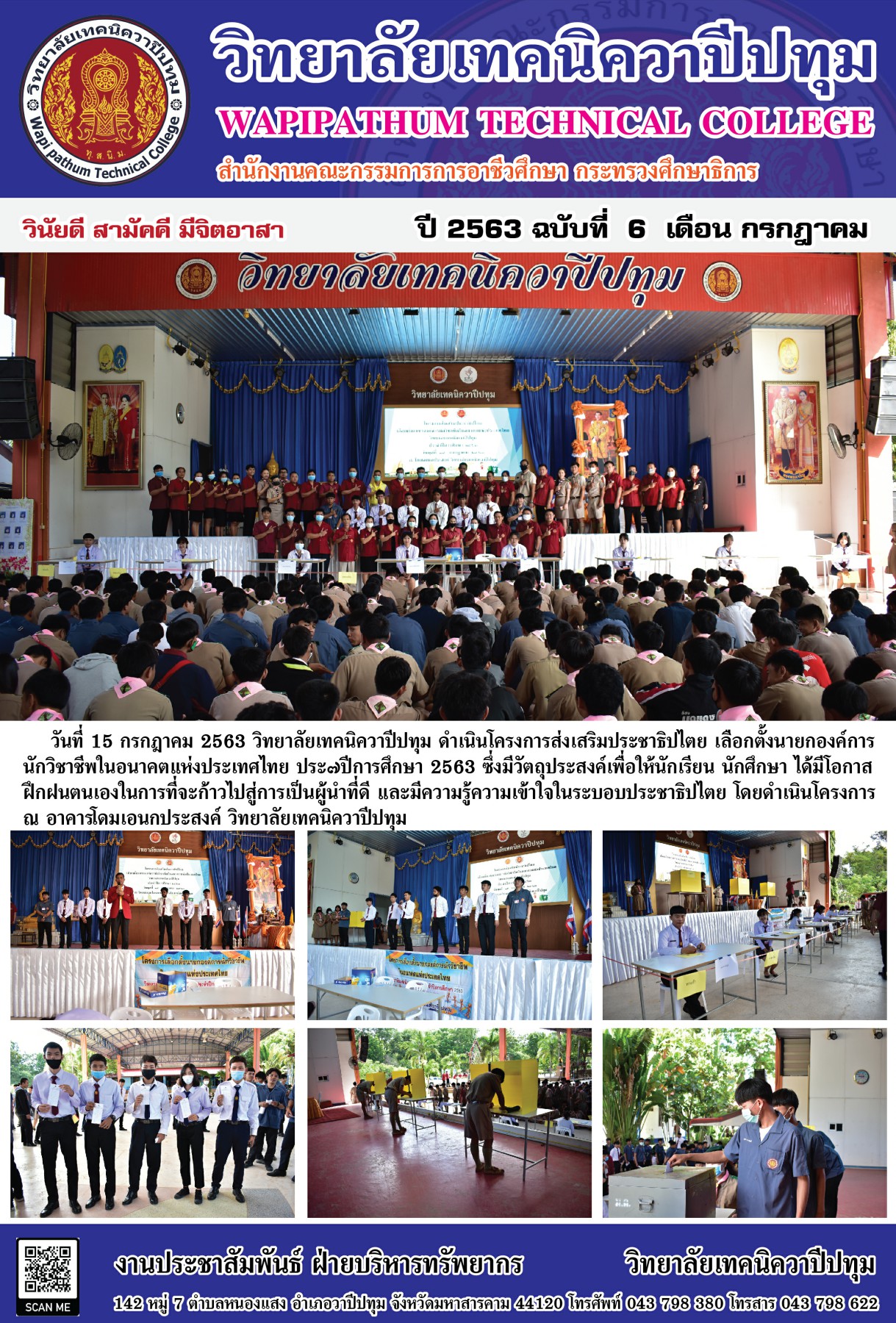 วิทยาลัยเทคนิควาปีปทุม ดําเนินโครงการส่งเสริมประชาธิปไตย เลือกตั้งนายกองค์การ นักวิชาชีพในอนาคตแห่งประเทศไทย ประจำปีการศึกษา 2563