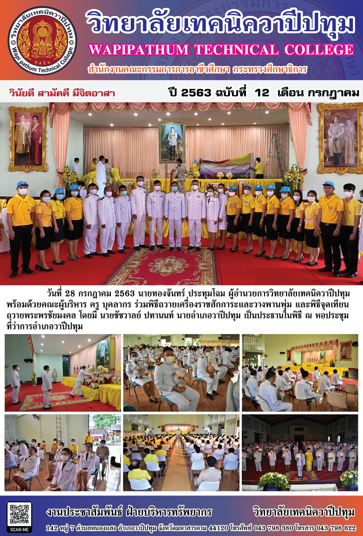 วิทยาลัยเทคนิควาปีปทุม ร่วมพิธีถวายเครื่องราชสักการะและวางพานพุ่ม และพิธีจุดเทียน ถวายพระพรชัยมงคล ณ หอประชุม ที่ว่าการอําเภอวาปีปทุม