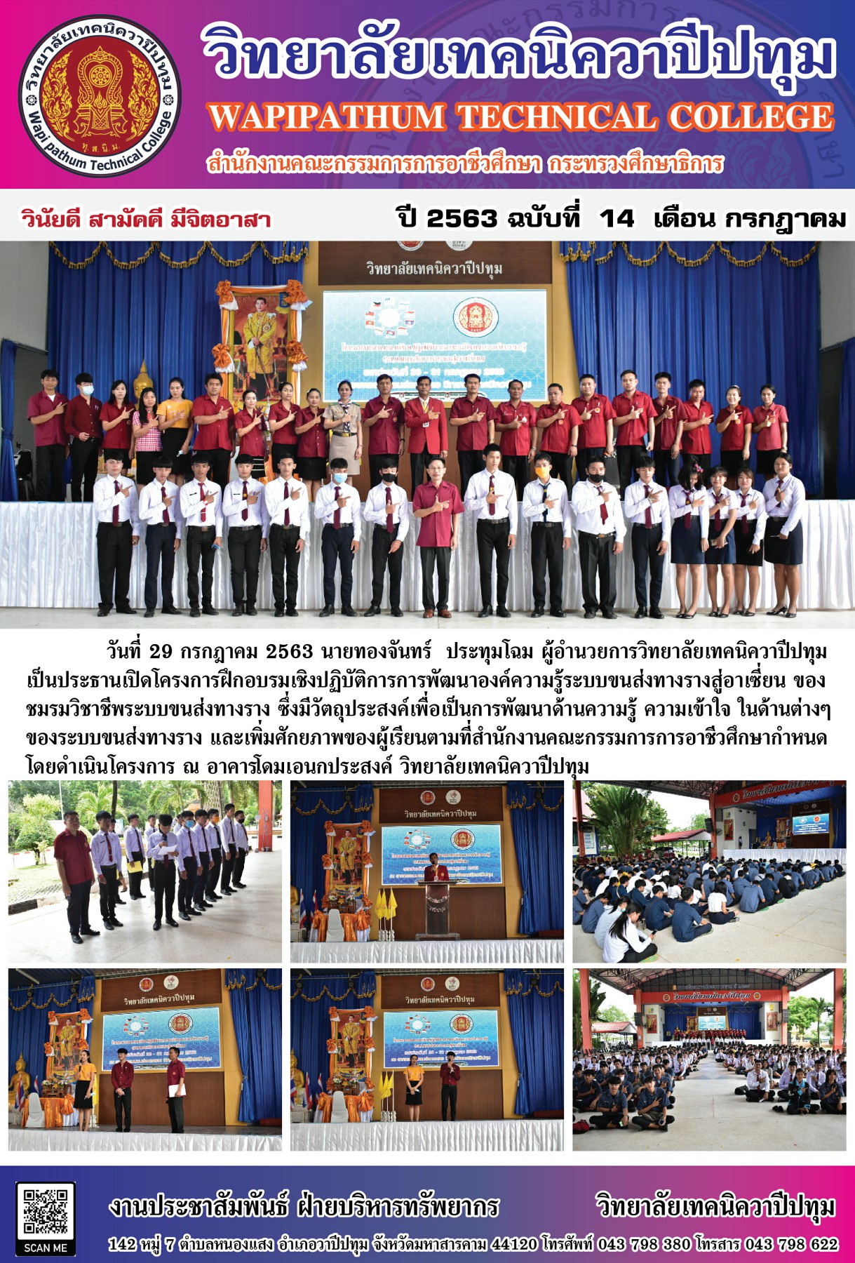วิทยาลัยเทคนิควาปีปทุม ปิดโครงการฝึกอบรมเชิงปฏิบัติการการพัฒนาองค์ความรู้ระบบขนส่งทางรางสู่อาเซียน ของ ชมรมวิชาชีพระบบขนส่งทางราง