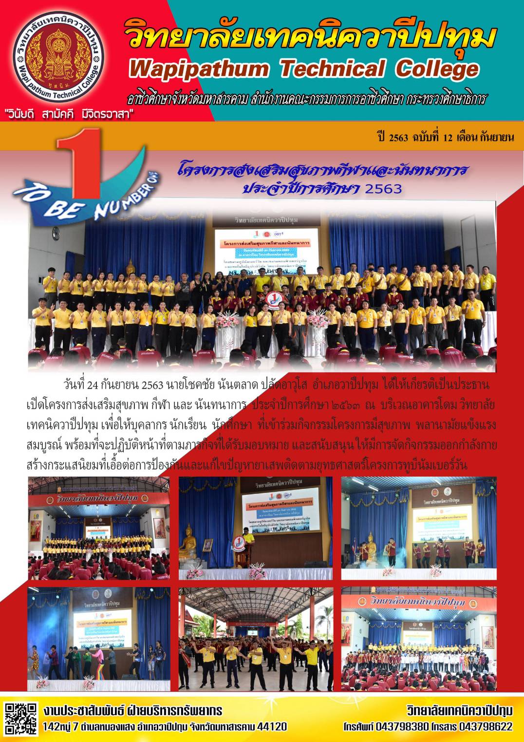 นายโชคชัย นันตลาด ปลัดอาวุโส อําเภอวาปีปทุม ได้ให้เกียรติเป็นประธาน เปิดโครงการส่งเสริมสุขภาพ กีฬา และนันทนาการ ประจําปีการศึกษา ๒๕๖๓ ณ บริเวณอาคารโดม วิทยาลัย เทคนิควาปีปทุม