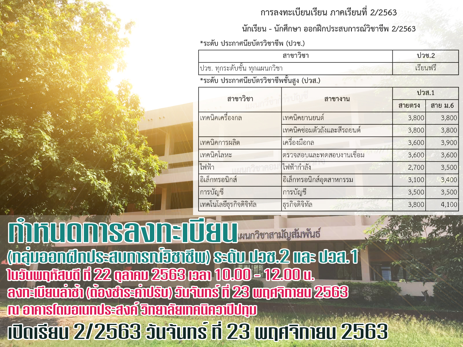 แจ้งกำหนดการลงทะเบียน ภาคเรียนที่ 2/2563