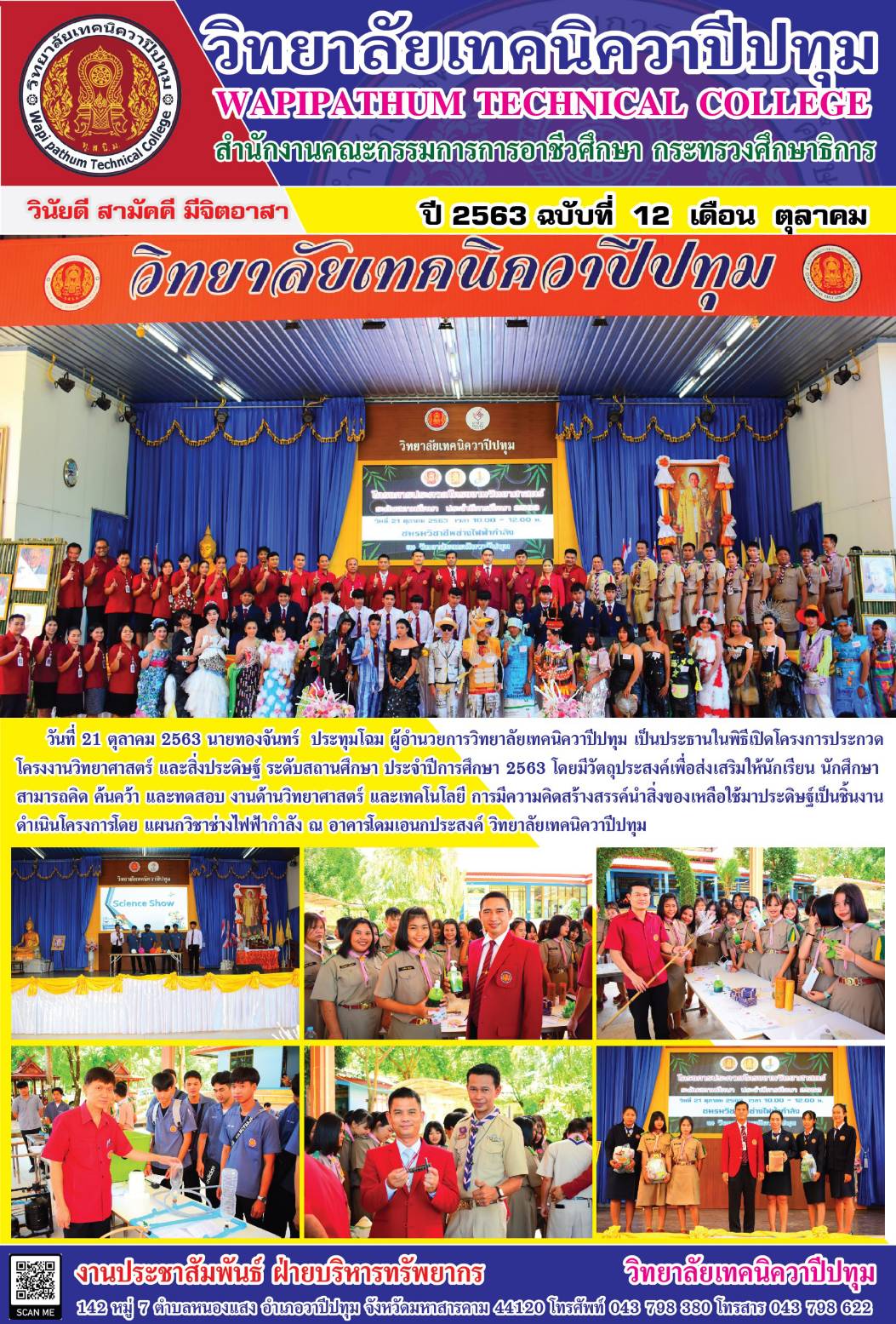 วิทยาลัยเทคนิควาปีปทุม เปิดโครงการประกวดโครงงานวิทยาศาสตร์ และสิ่งประดิษฐ์ ระดับสถานศึกษา ประจำปีการศึกษา 2563