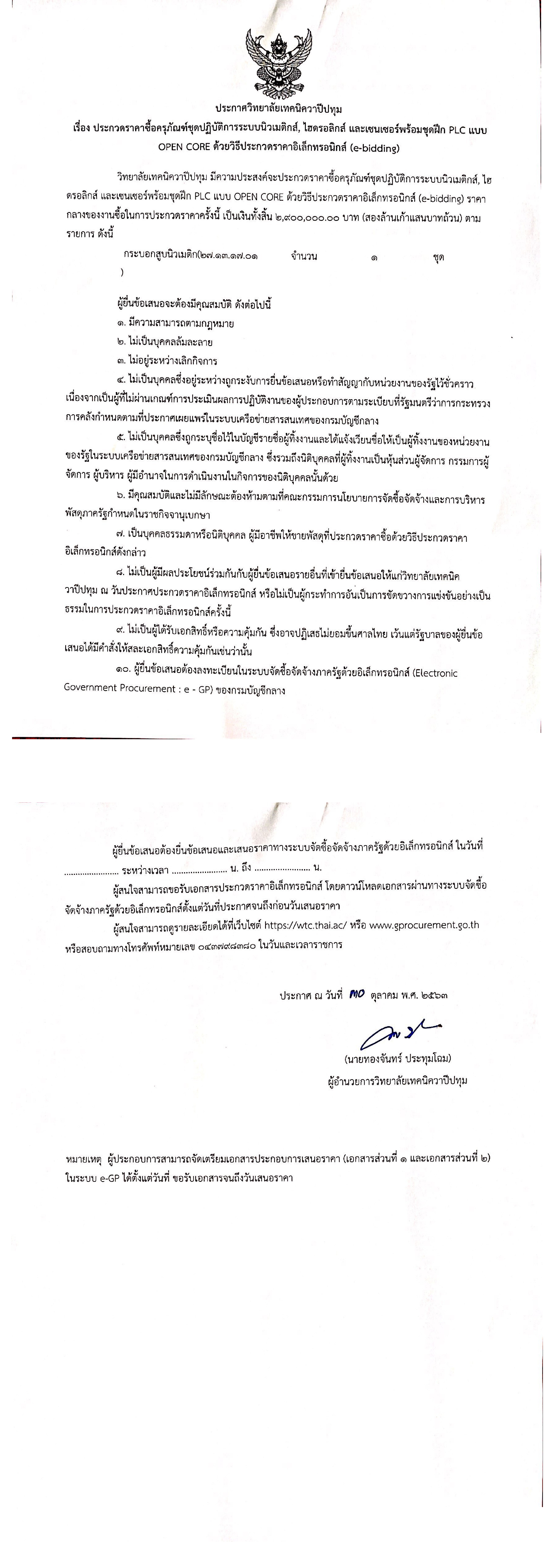 ประกาศวิทยาลัยเทคนิควาปีปทุม เรื่อง ประกวดราคาซื้อครุภัณฑ์ชุดปฏิบัติการระบบนิวเมติกส์, ไฮดรอลิกส์ และเซนเซอร์พร้อมชุดฝึก PLC แบบ OPEN CORE ด้วยวิธีประกวดราคาอิเล็กทรอนิกส์ (e-bidding)