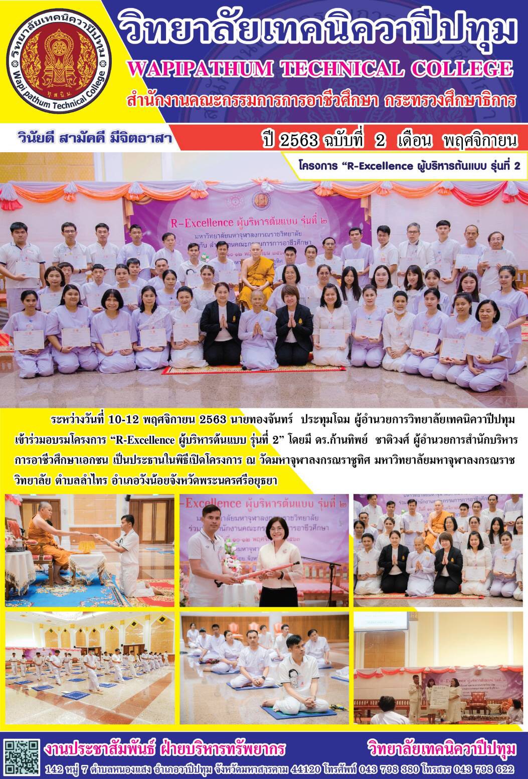 นายทองจันทร์ ประทุมโฉม ผู้อำนวยการวิทยาลัยเทคนิควาปีปทุม เข้าร่วมอบรมโครงการ ?R-Excellence ผู้บริหารต้นแบบ รุ่นที่ 2