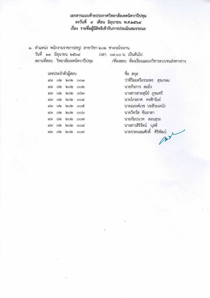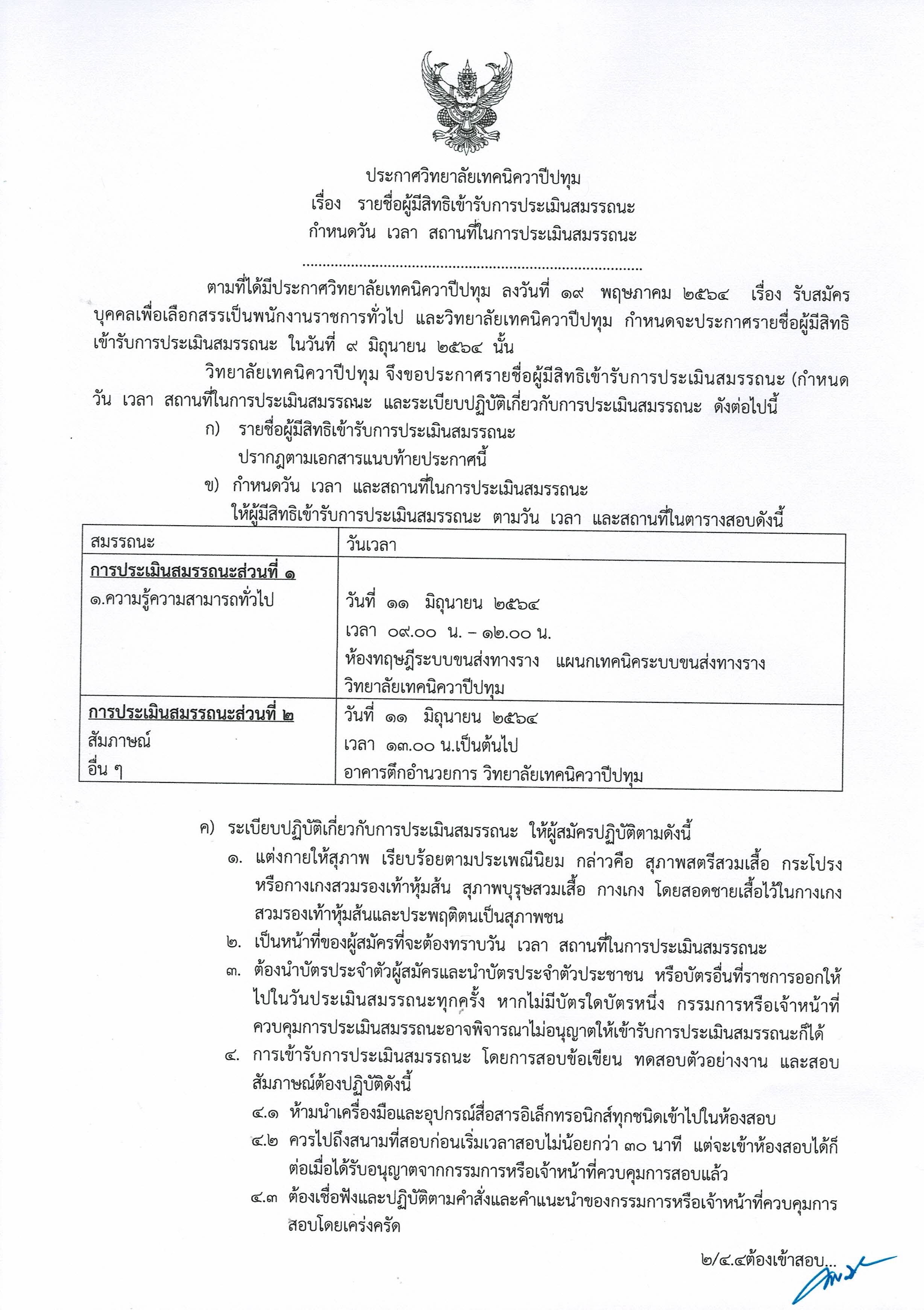 ประกาศวิทยาลัยเทคนิควาปีปทุม เรื่อง รายชื่อผู้มีสิทธิเข้ารับการประเมินสมรรถนะ กำหนดวัน เวลา สถานที่ในการประเมินสมรรถนะ
