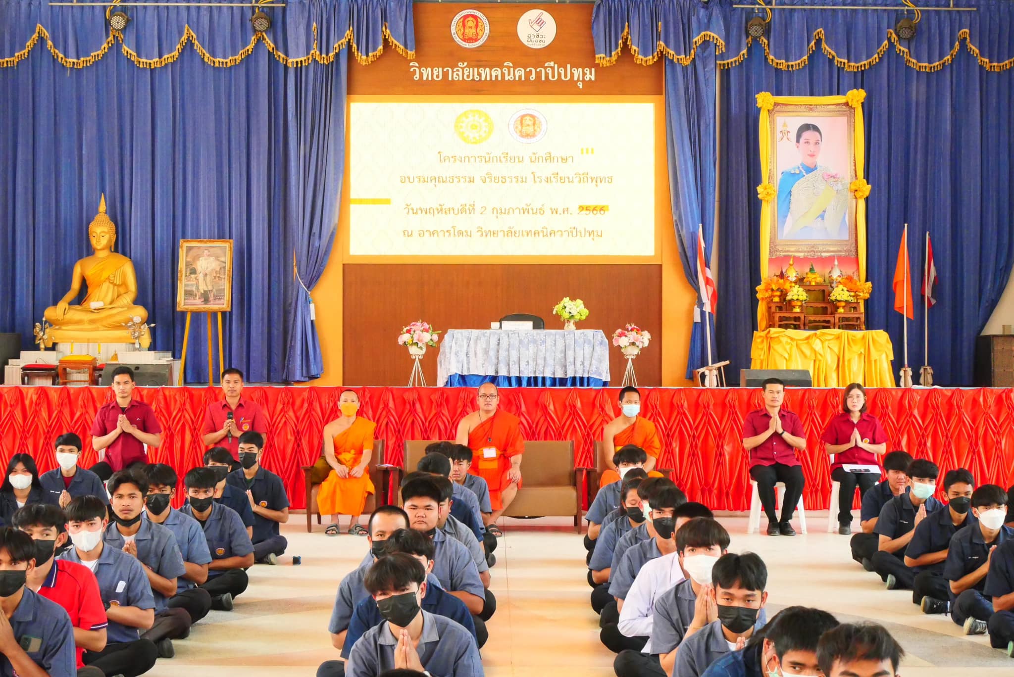 กิจกรรมโครงการนักเรียน นักศึกษา อบรมคุณธรรม จริยธรรม โรงเรียนวิถีพุทธ วันพฤหัสบดีที่ 2 กุมภาพันธ์ พ.ศ. 2566 ณ อาคารโดม วิทยาลัยเทคนิควาปีปทุม