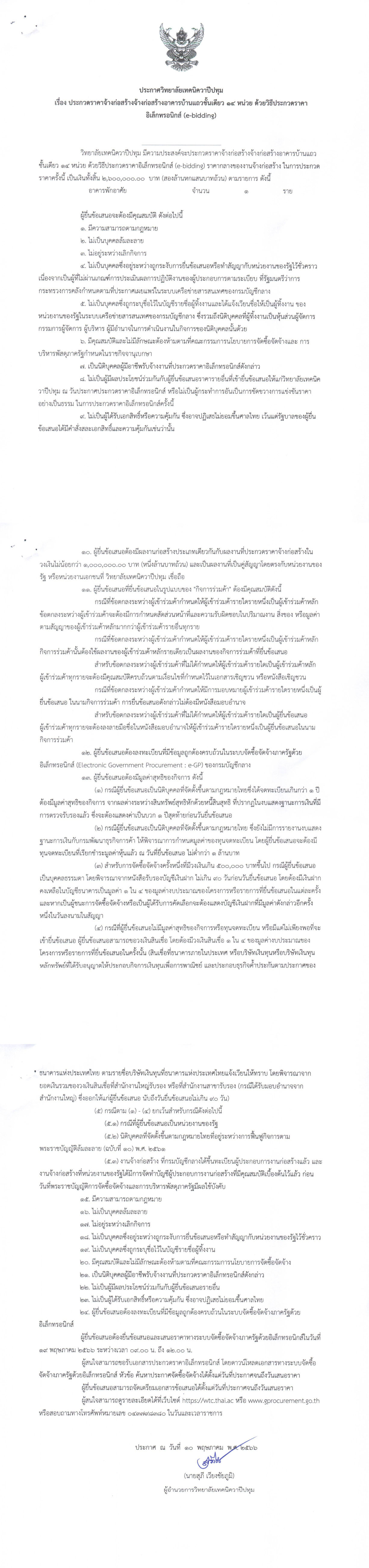 ประกาศวิทยาลัยเทคนิควาปีปทุม เรื่อง ประกวดราคาจ้างก่อสร้างอาคารบ้านแถวชั้นเดียว 14 หน่วย ด้วยวิธีประกวดราคาอิเล็กทรอนิกส์ (e-bidding)