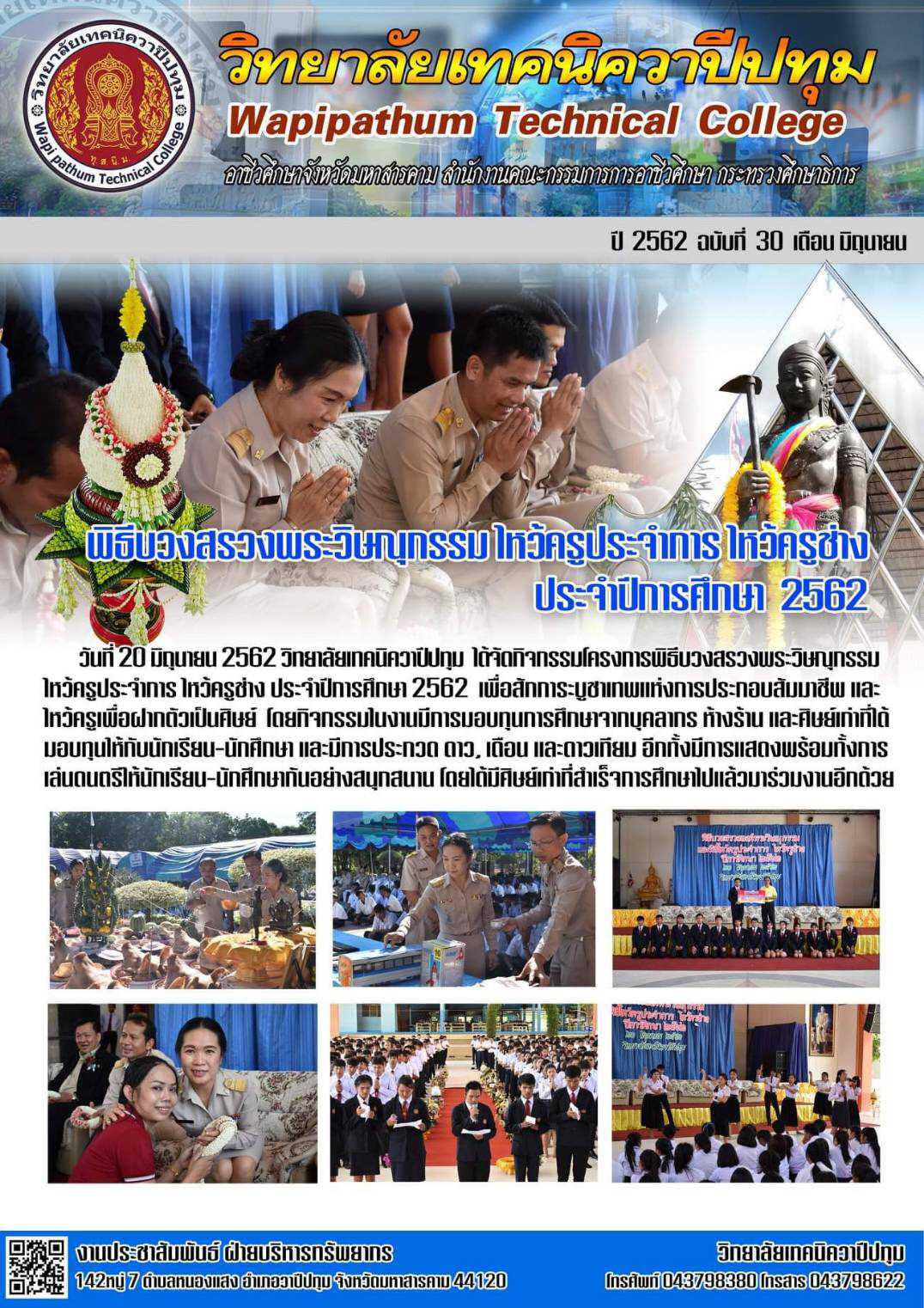 วิทยาลัยเทคนิควาปีปทุม จัดพิธีบวงสรวงพระวิษณุกรรม ไหว้ครูประจำการ ไหว้ครูช่าง ประจำปีการศึกษา 2562