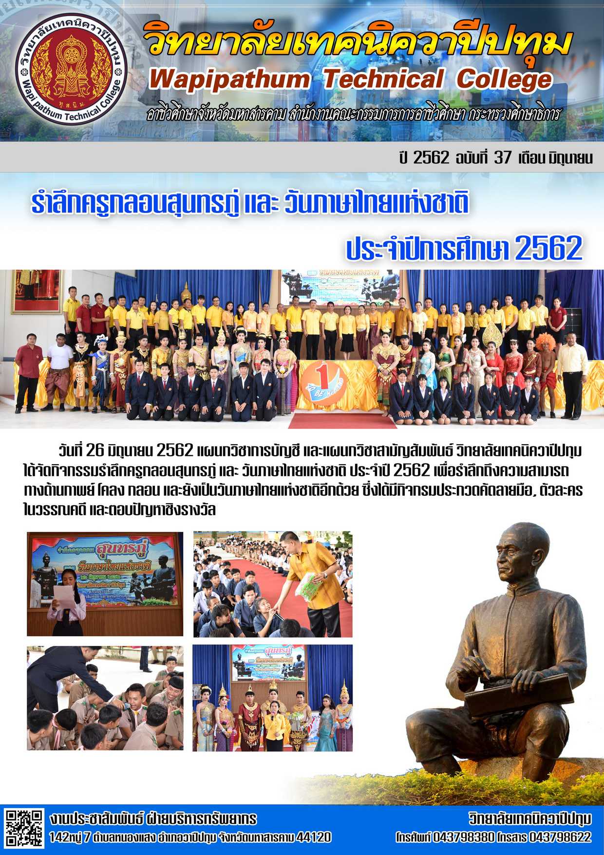 วิทยาลัยเทคนิควาปีปทุม จัดกิจกรมมรำลึกครูกลอนสุนทรภู่ และวันภาษาไทยแห่งชาติ ประจำปีการศึกษา 2562