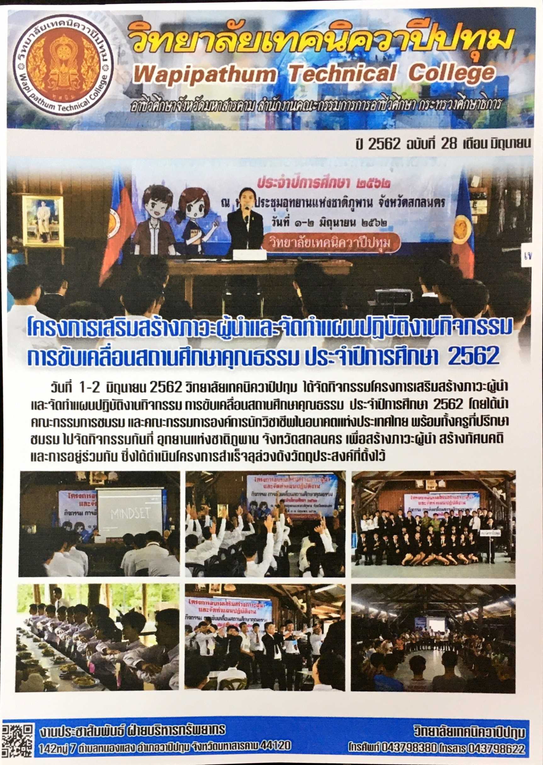 โครงการอบรมเสริมสร้างภาวะผู้นำ และจัดทำแผนปฏิบัติงาน กิจกรรมการขับเคลื่อนสถานศึกษาคุณธรรม ประจำปี 2562