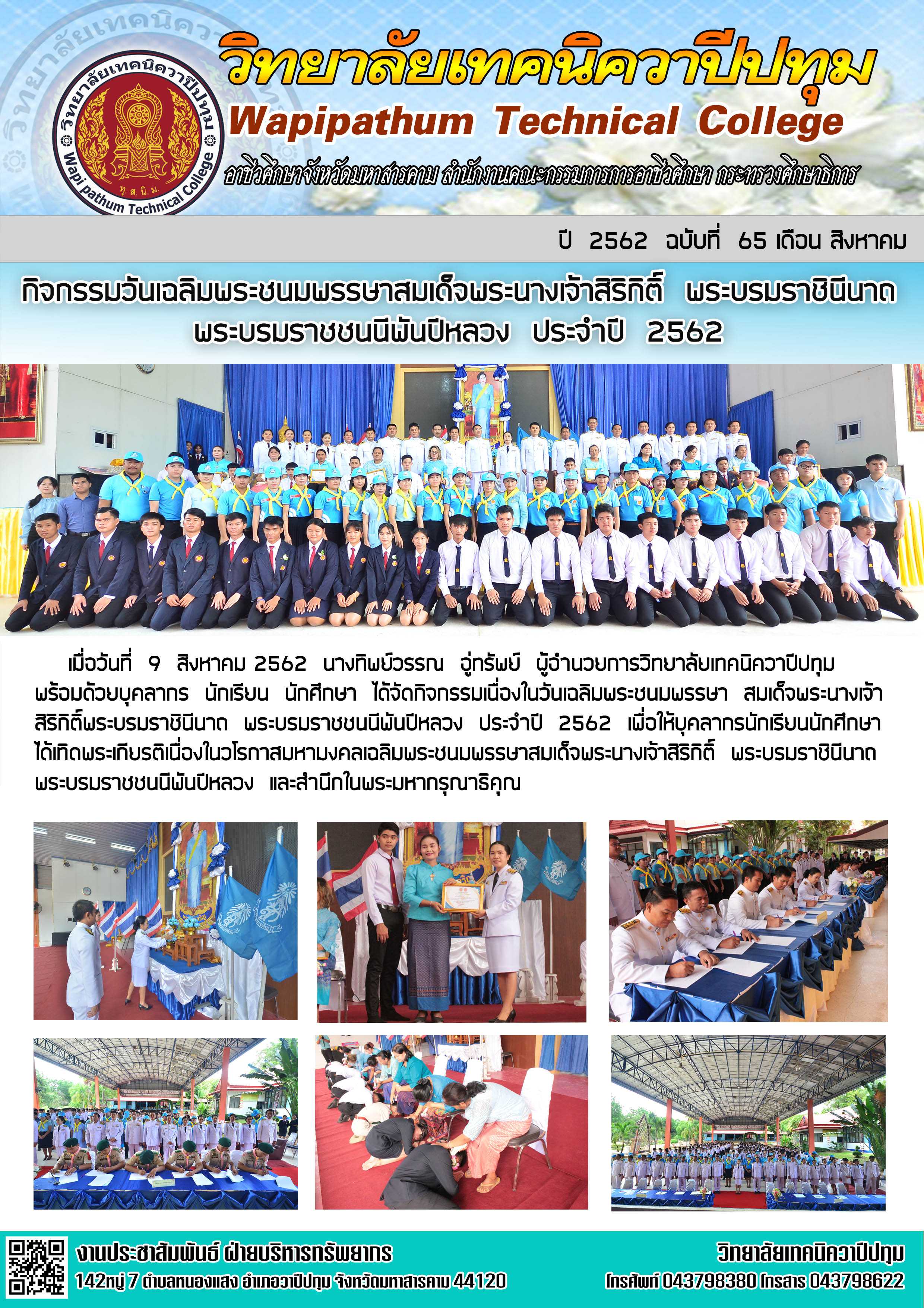 วิทยาลัยเทคนิควาปีปทุม จัดกิจกรรมวันเฉลิมพระชนมพรรษาสมเด็จพระนางเจ้าสิริกิติ์ พระบรมราชินีนาถ พระบรมราชชนนีพันปีหลวง ประจำปี 2562