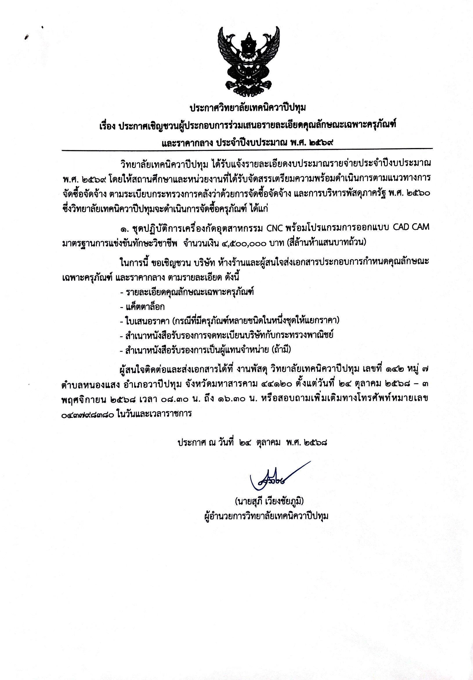 ประกาศ ณ วันที่ ๒๔ ตุลาคม พ.ศ. ๒๕๖๘